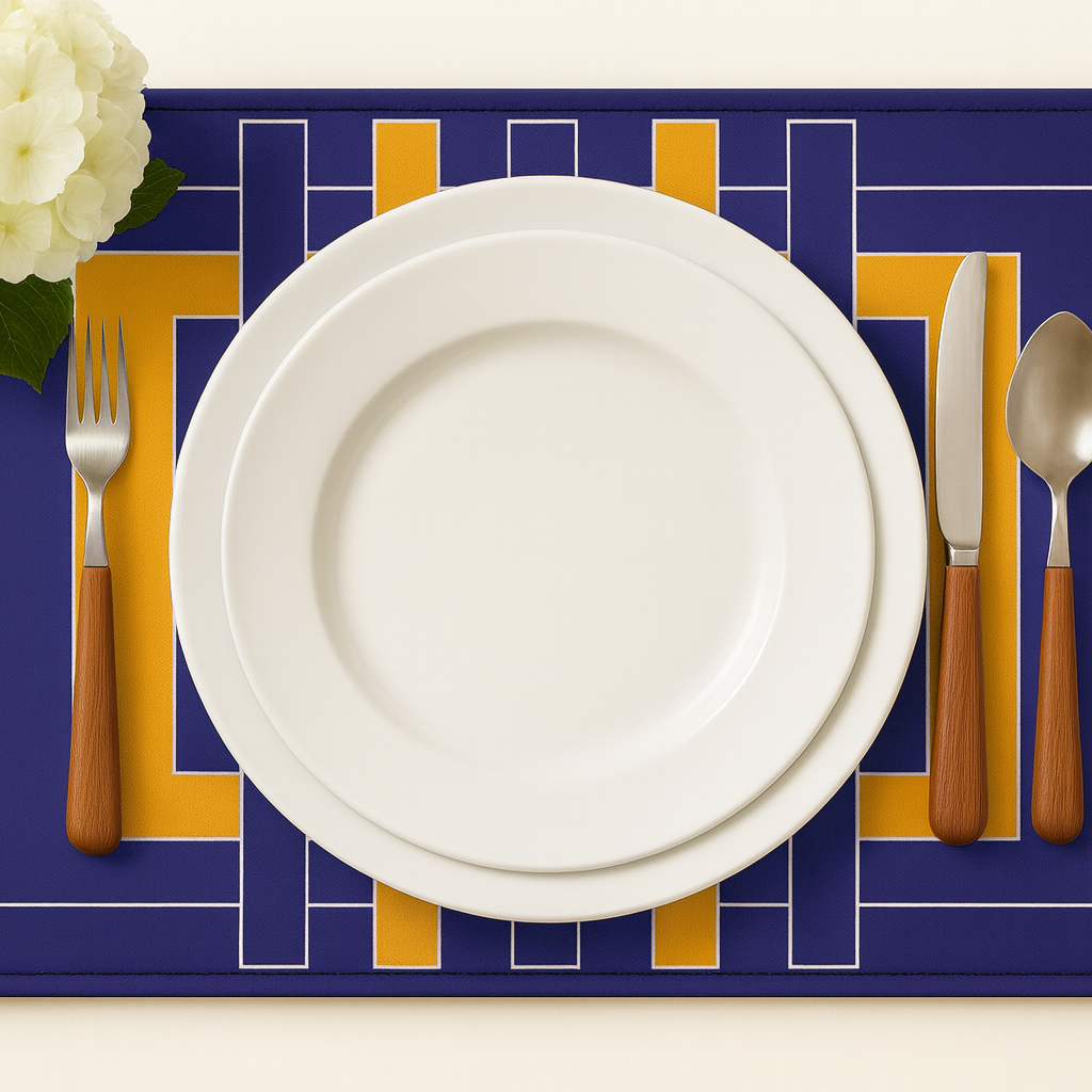 An exclusive placemat from the Stripes collection — bold, colorful, and graphic.